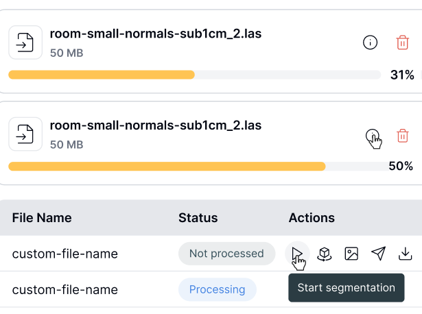 Onze tool verwerkt 3D-scandata tot bruikbare informatie met behoud van millimeterprecisie. Het platform accepteert scangegevens van verschillende bronnen en structureert deze voor gebruik in een digital twin. De ScanPlan app geeft jou de mogelijkheid om scandata efficiënt te segmenteren en exporteren.